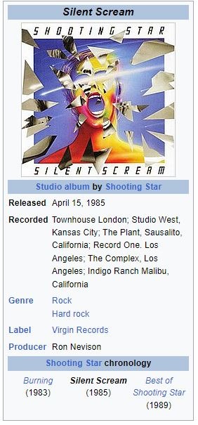 Shooting Star broke up about a year after Silent Scream was released. A short time later, Warren Rhoades who did house sound and was a studio engineer for Shooting Star at multiple locations got a gig at Fantasy Studio's as an engineer out west. Gary West who was the lead singer/songwriter for Shooting Star was working on a solo record but still recorded with Van Mclain (guitarist/songwriter) Shooting Star at the Sound Factory. It was during this time and prior that I started doing work for Shooting Star. I was also going to college full time and working at the Sound Factory.