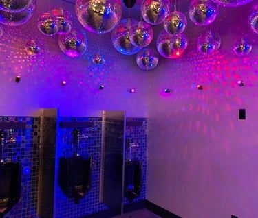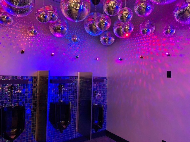Bathroom was decked out with disco balls